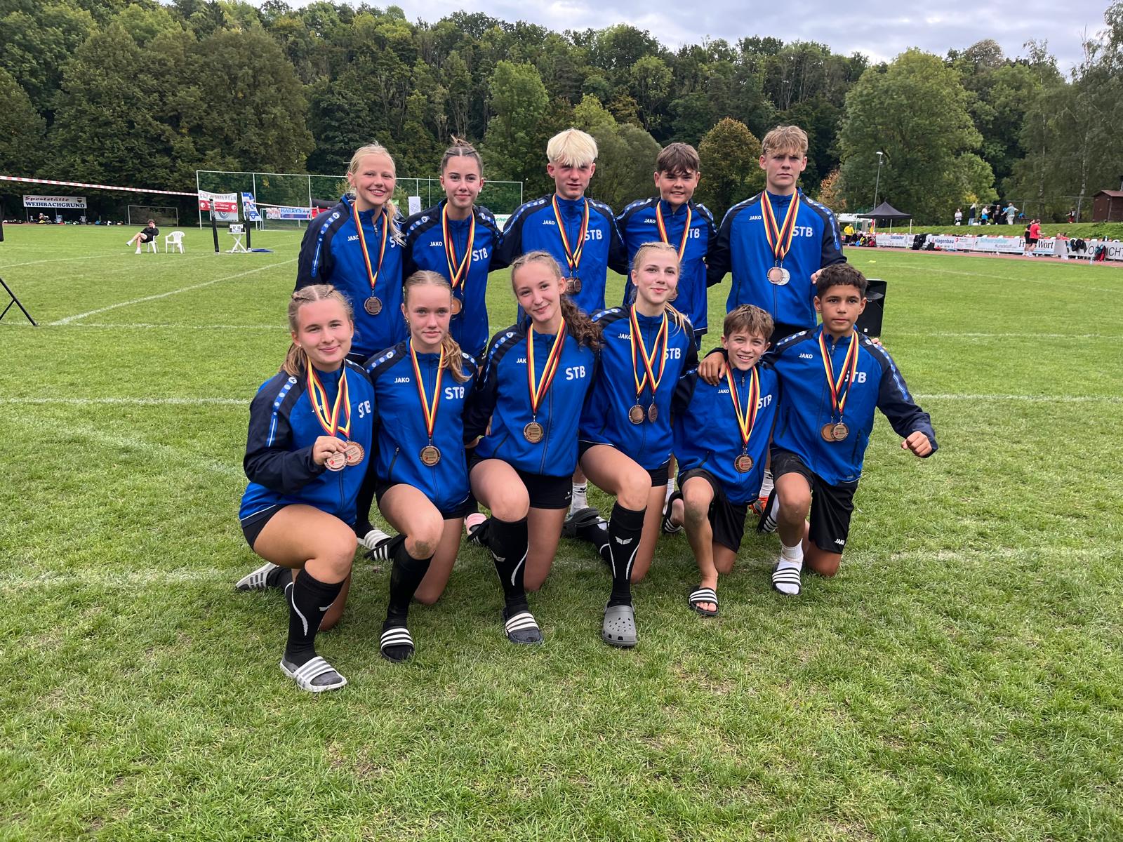 Die Jungs der U14 zeigten eine starke Vorrunde und gewannen alle Spiele – lediglich gegen Niedersachsen musste man sich knapp geschlagen geben. Mit Leon Braun, Till Aigner, Matti Nacke und Leander Dörr standen vier Stammheimer im Kader, die alle viel Spielzeit erhielten. Meistens waren 3 Jungs aus Stammheim auf dem Feld! Im Viertelfinale folgte am Sonntagmorgen ein souveräner Sieg, bevor es im Halbfinale zum Schlagabtausch mit Sachsen kam – dem späteren Turniersieger. Der Entscheidungssatz ging denkbar knapp mit 10:12 verloren. Im kleinen Finale zeigten die Jungs erneut ihre Klasse und sicherten sich mit einem 2:0-Sieg gegen Baden die Bronzemedaille.