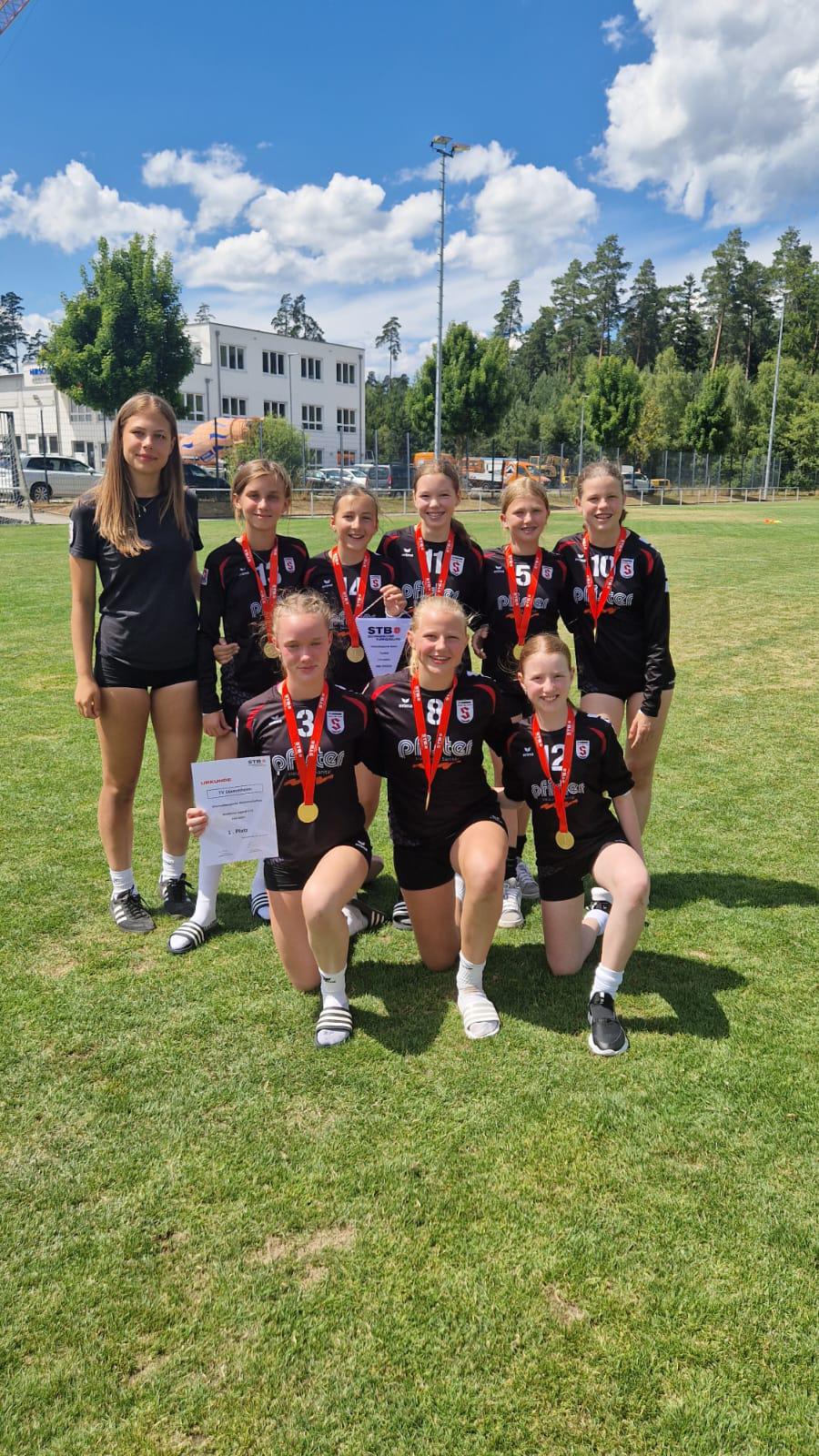 Mit 4 Mannschaften war der TV Stammheim in die Saison der U10 gestartet, und in der Vorrunde hatten alle 4 Mannschaften ihr Spielkönnen bereits unter Beweis gestellt. Über den weiteren Saisonverlauf trennten sich dann die Wege, Stammheim 3 und 4 mussten anderen Teams den Vortritt lassen, und qualifizierten sich für die Bezirksmeisterschaft (Runde um die Plätze 13-39). Nach dem ersten Spieltag dieser Endrunde war Stammheim 3 (Jonas, Simon, Umeyr, Mika) ungeschlagen geblieben, und Stammheim 4 (Amelie, Anni, Emilie, Hannah, Ida, Johanna, Kathi) hatte neben der Niederlage gegen die Vereinskollegen alle anderen Spiele gewonnen. Auf Platz 1 und 2 liegend gingen die beiden Teams in den Rückspieltag in Stammheim, der die Entscheidung um den Titel bringen sollte. Dieses Mal behielten die Mädchen im vereinsinternen Duell die Oberhand, gegen alle anderen Gegner gewannen beide Teams und beendeten somit die Meisterschaft einträchtig mit 22:2 Punkten auf den Plätzen 1 und 2, getrennt nur durch das Ballverhältnis, das den Mädchen den Titel einbrachte.