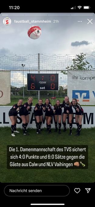 Im zweiten Stammheimer Spiel wartete der NLV Vaihingen, der in seiner ersten Partie überraschend dem TV Vaihingen/Enz einen Satzverlust beibringen konnte. Stammheim startete personell wie in der ersten Partie, setzte jedoch dieses Mal auf Anja Brezing im Rückschlag. Erneut hakte es zu Spielbeginn und Stammheim kämpfte wieder mit Startschwierigkeiten. Analog zum ersten Spiel sicherte man sich den Satz jedoch trotzdem mit 11:7. Ab dem zweiten Satz griffen dann die einzelnen Zahnräder ineinander und Mitte des Satzes feierte Julia Pfister ihr Debüt in Stammheims erster Mannschaft. Mit 11:8 sicherte sich Stammheim den Satz. Der NLV Vaihingen stellte daraufhin im Angriff um und versuchte Stammheim mit neuem Service in Bedrängnis zu bringen. Stammheim zeigte jedoch seine klasse, entschärfte jeden ball und punktete nach Belieben. Erneut ersetzte im Laufe des Satzes Alena Ferli in der Abwehr Lea Weller. Damit stand die jüngste Defensive aller Zeiten in einem Bundesligaspiel der Stammheimer auf dem Feld. Mit 11:4 endete der Satz deutlich und die nächsten beiden Punkte waren eingefahren. Der Lohn ist die Tabellenführung in der 2. BL West.