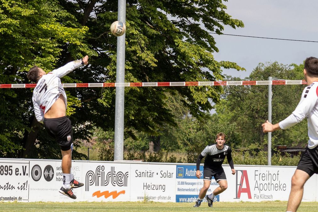 Etwas unerwartet verlief der Samstagnachmittag im Faustball-Stadion Stammheim. Zuschauer, die ein paar Minuten nach Anpfiff der ersten Partie des Tages am Sporgelände ankamen, sahen bereits einen schnellen Satzrückstand der Hausherren im ersten Spiel gegen die Gäste aus dem unterfränkischen Segnitz. Das junge Team aus Bayern spielte aus einer kompakten Defensive heraus im Angriff mutig auf und Stammheim steuerte mit sechs direkten Eigenfehlern alles Weitere zum Satzerfolg von Segnitz bei.