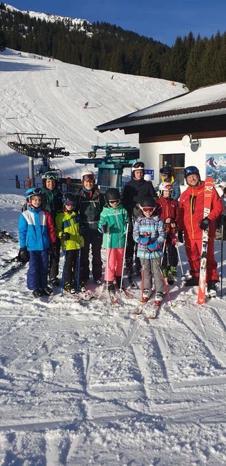 Voller Vorfreude auf einen tollen Tag Skitag, trifft die TV-Gruppe bei strahlendem Sonnenschein auf dem Parkplatz der Wannenjochbahn in Schattwald ein. Abwechslungsreiche Pisten aller Schwierigkeitsgrade sollen die drei Lifte der Bergbahnen Tannheimer Tal bieten. Nicht jedoch an diesem Tag: „Der Verbindungslift ist heut leider zu, ihr könnt nur hier am Wannenjoch fahren“, nur eine Piste und dazu noch eine rote? Doch die schon bei der 2. Bergfahrt erspähten die ersten das Glück, der Verbindungslift läuft doch. So konnte die 8er Runde doch noch durchgezockt, genossen oder mit den Betreuern der Schneesportschule erkundet werden.