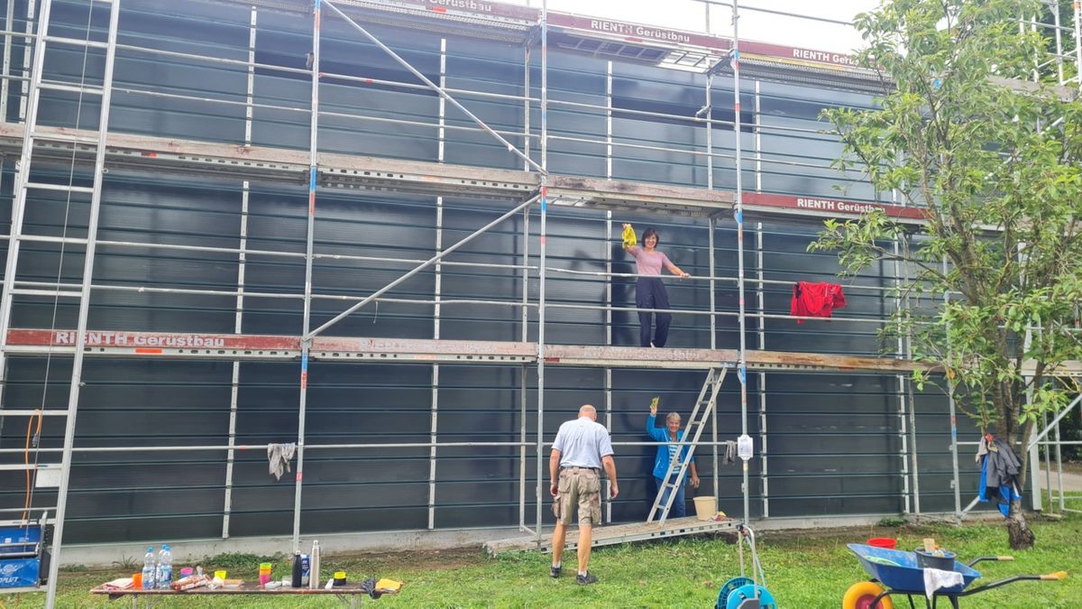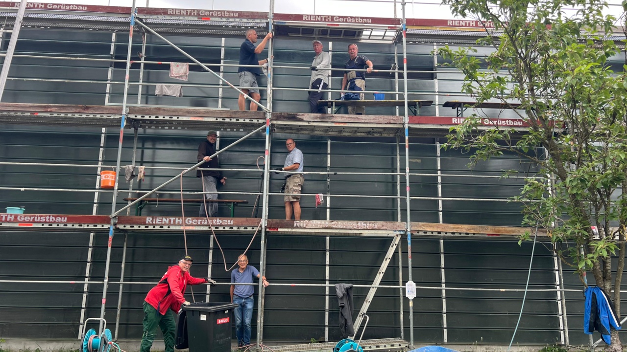 Ein durchaus erfolgreicher Arbeitseinsatz wurde am heutigen Samstag von 9.00 – 16.00 Uhr an der Glasfassade der TV-Halle, Straßenseite, durchgeführt. So konnte das mit Waschbürsten und Putzlappen bestückte Helferteam nach und nach alle Glaselemente abnehmen, reinigen und wieder anbringen. Unter dem Motto: „TV goes green“ wird auch hier Nachhaltigkeit großgeschrieben, denn die Fassade erstrahlt nun in neuem Glanz mit den bisherigen Glaselementen. Ein großer Dank an alle helfenden Hände!