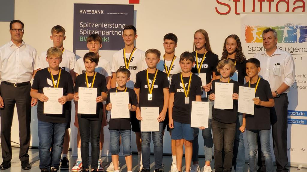 Zusammen mit zahlreichen weiteren erfolgreichen Sportlerinnen und Sportlern aus Stuttgart durften sich auch einige TVS-ler die begehrte Medaille umhängen. Larissa Keser, Lena Sawatzki, Tom Aigner, Benni Dudda, Tobias Beck und Jakob Sailer wurden für ihre Leistungen mit der Württemberg-Auswahl ausgezeichnet. Außerdem Die U12 Jungs des TV von Trainer Chris Nacke für die erfolgreiche Saison 2021.
