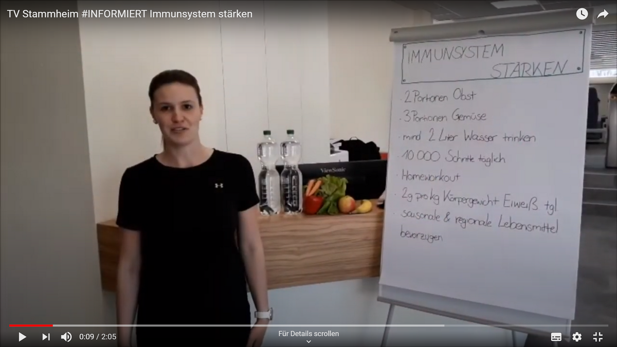 In diesem Clip geht es darum, wie wir mit einfachen Mitteln unser Immunsystem stärken können. Die richtige Ernährung und natürlich Bewegung stehen dabei im Vordergrund.