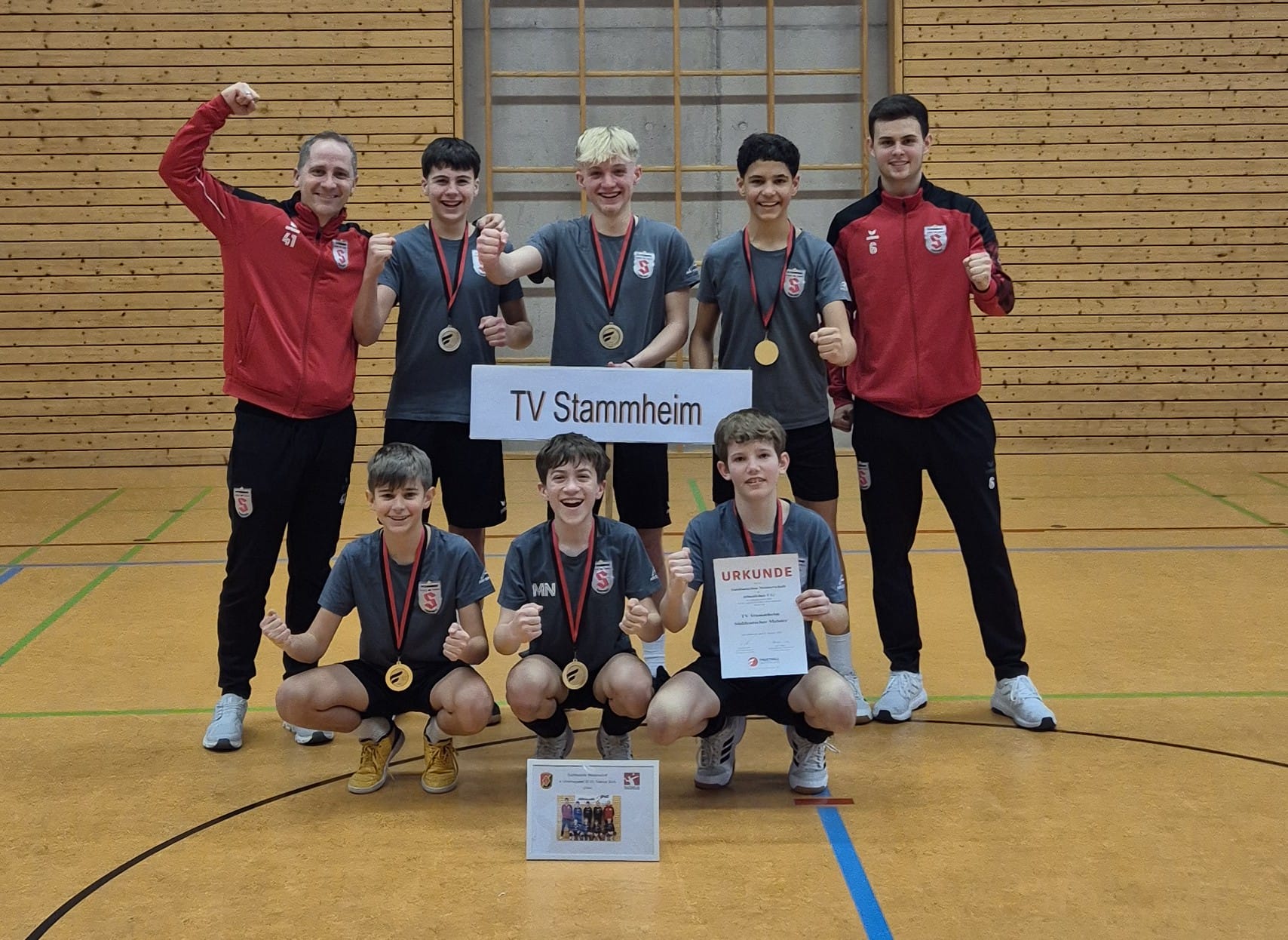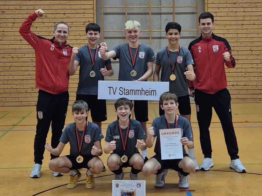 Die Medaillenjäger haben erneut zugeschlagen: Zum vierten Mal in den vergangenen fünf Saisons ging der U14‑Titel der Süddeutschen Meisterschaft nach Stammheim. In Bad Liebenzell traf das Team um Kapitän Matti Nacke in der Vorrunde auf den TV Waldrennach, die SG Herrenwahlthann/DJK FV Ursensollen sowie den TV Bretten.