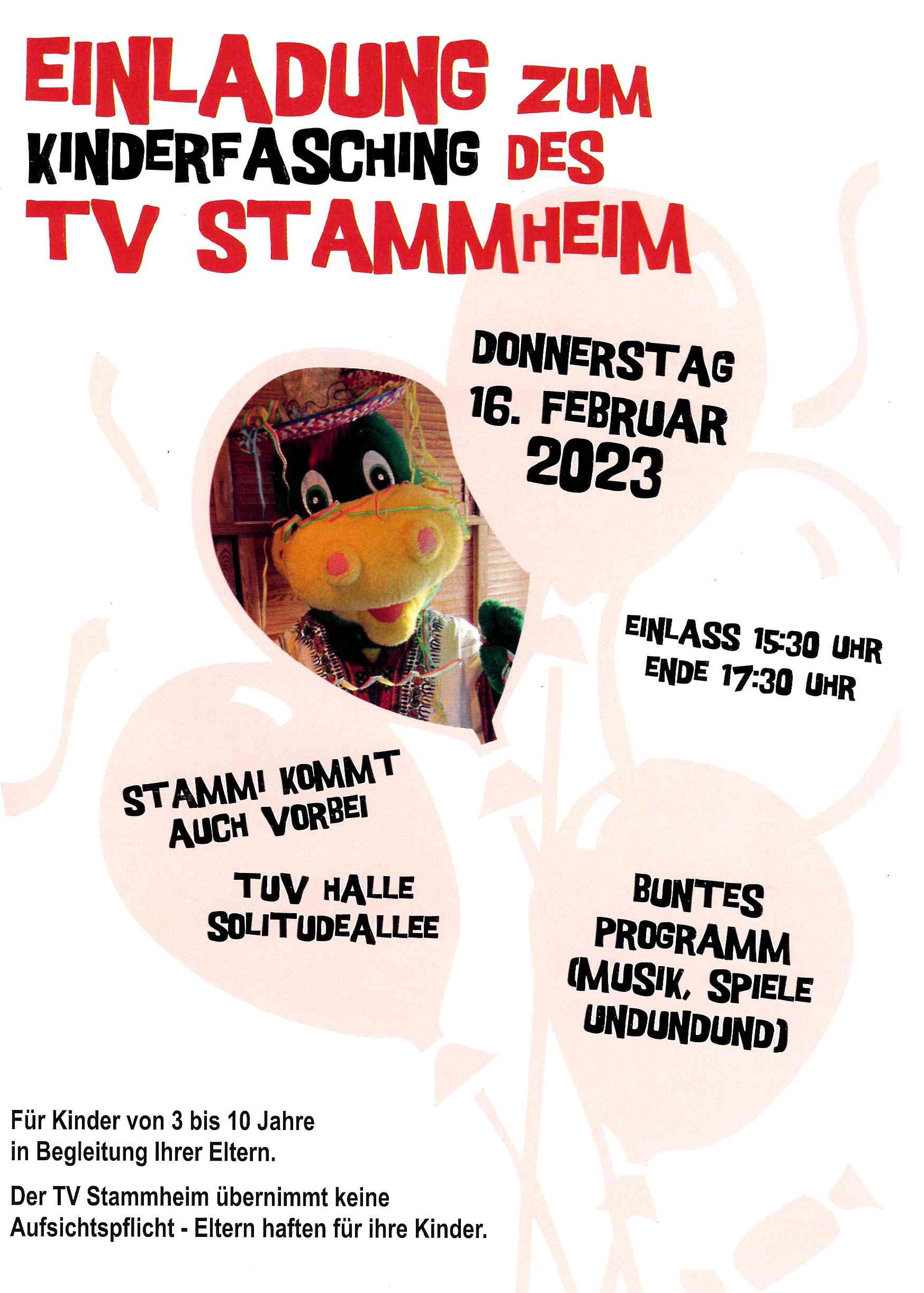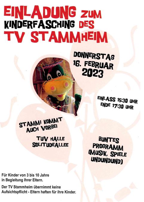 Es ist wieder soweit: Am Donnerstag 16.02.2023 werden kleine Hexen, Feen, Superhelden, Cowboys und Tiere die Stammheimer TuV-Halle in Beschlag nehmen.