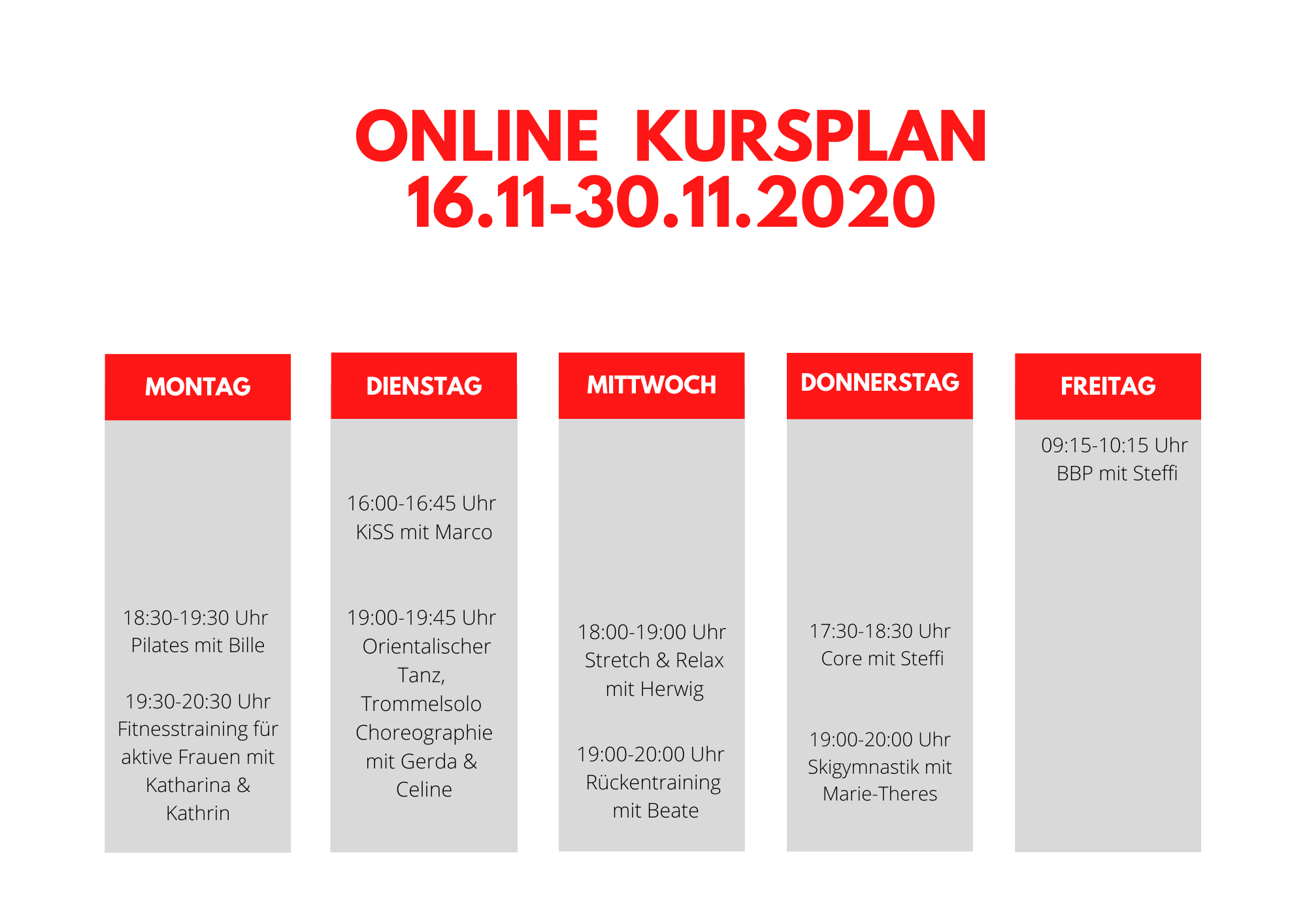 Den aktuellen Kursplan findet ihr als Grafik zum Artikel, der Link zur Teilnahme wurde per Email an alle Mitglieder verschickt.