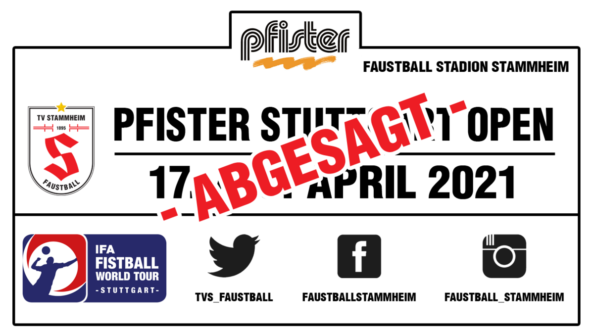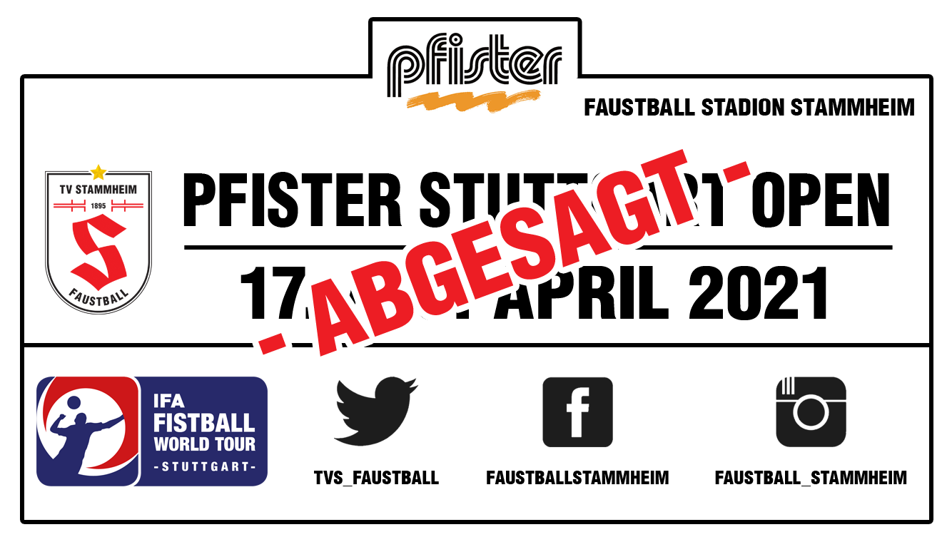 Nach 2020 fallen auch 2021 die Pfister Stuttgart Open der Corona-Pandemie zum Opfer. Aufgrund der nach wie vor geltenden Maßnahmen, welche den Breitensport in weiten Teilen untersagen, muss der TV Stammheim nun zum zweiten Mal in Folge das prestigeträchtige Frühjahrsturnier im Norden Stuttgarts absagen. Nachdem bereits zuvor die IFA World Tour Saison 2021 abgesagt wurde und auch nach wie vor keinerlei Wettkämpfe auf nationalem und internationalen Niveau stattfinden können, ist die Absage nicht überraschend.