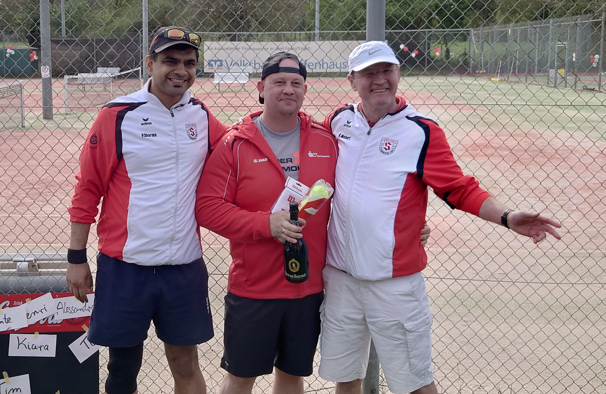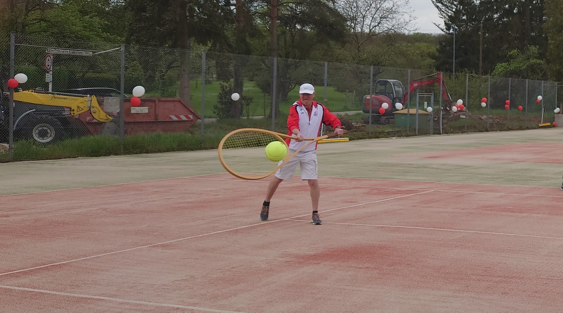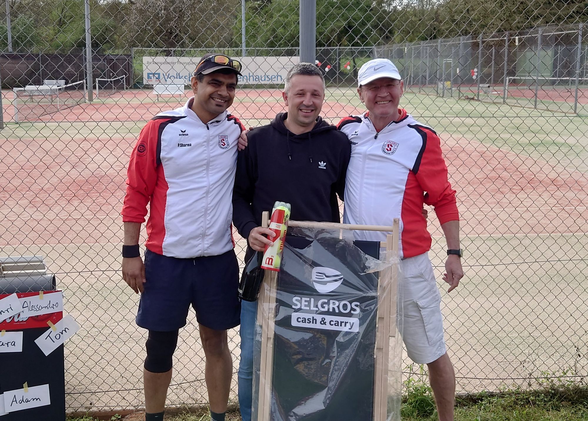 Dies wurde mit einem kleinen Showmatch zwischen Thorsten und Erwin auch gebührend zelebriert, wobei Erwin das Handycap eines Riesenschlägers hatte, was dennoch aber sehr gute Ballwechsel zwischen den beiden hervorbrachte - großen Respekt dafür!