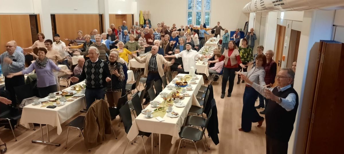 Ein kleines Rahmenprogramm mit der Seniorentanzgruppe der Tanzoase, die die Anwesenden zum MItmachen aufforderte, trug zu dem schönen Gemeinschaftsnachmittag bei. In angenehmer, sportkameradschaftlicher und freundlicher Atmosphäre, im Kreise von Gleichgesinnten gemeinsam Zeit verbringen und sich über TV-Themen und darüber hinaus auf den neuesten Stand zu bringen, das genossen unsere Senior*innen zusehend.