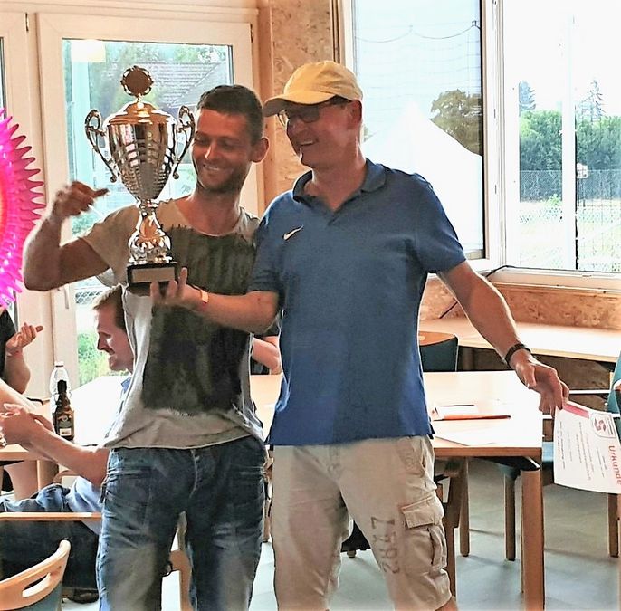 Außerdem gab es dann noch die offizielle Siegerehrung der Finalrundenteilnehmer der Verbandsmeisterschaft, durch unseren 1. Abteilungsleiter Erwin Meinert. Er zeigte sich höchst beeindruckt und begeistert von den durchgeführten Matches und lobte alle Teilnehmer der Vereinsmeisterschaft 2019 und betonte, wie sehr er sich auf das nächste Jahr und damit auch auf die nächste Vereinsmeisterschaft freue.