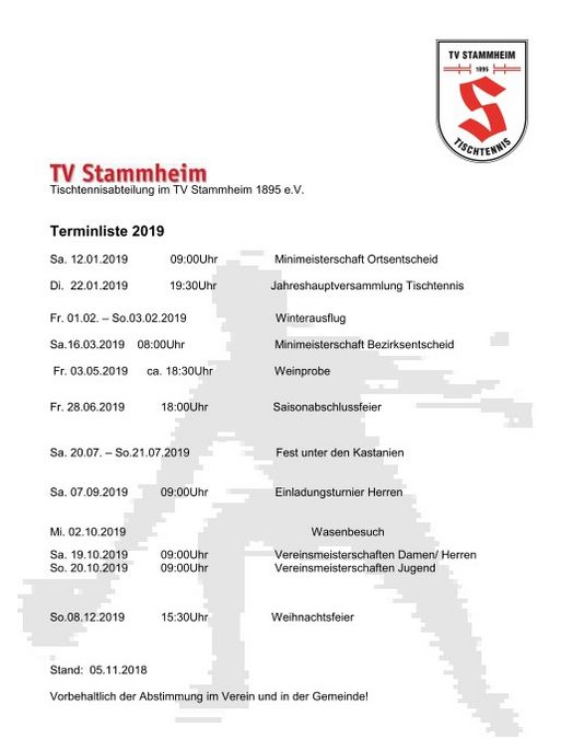 Terminliste Abteilung Tischtennis anbei und ab sofort online zum Abrufen bereit.