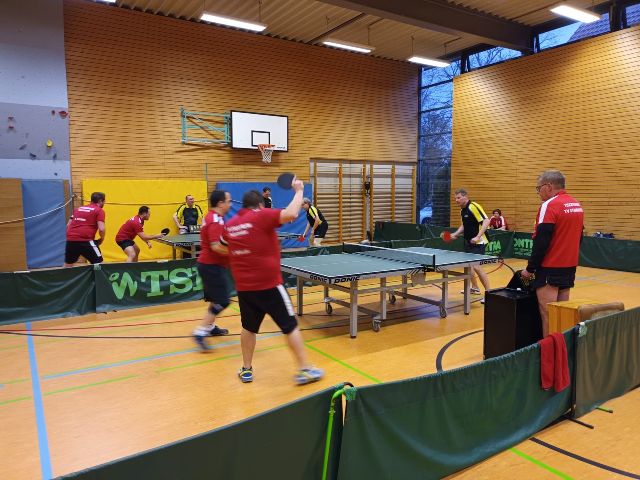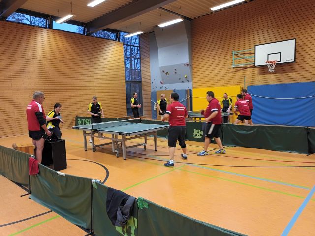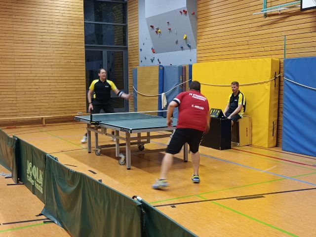 letzten Ballwechsel spielten. Bevor sich dann wenig später das untere Paarkreuz duellierte, stand es