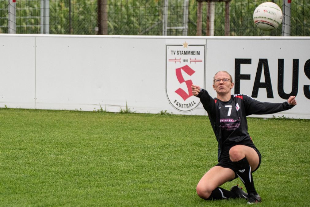 Bereits um 9:00 Uhr Begann es mit den ersten Regentropfen, die im Laufe des Tages kontinuierlich stärker wurden und nicht mehr nachlassensollten. Ideale Bedingungen für eine eng umkämpfte Regenschlacht im Stammheimer Faustball-Stadion. Und die rund 50 tapferen Zuschauer, die trotz der äußerlichen Bedingungen den Weg auf die Anlage des TV Stammheim gefunden haben, wurden nicht enttäuscht.