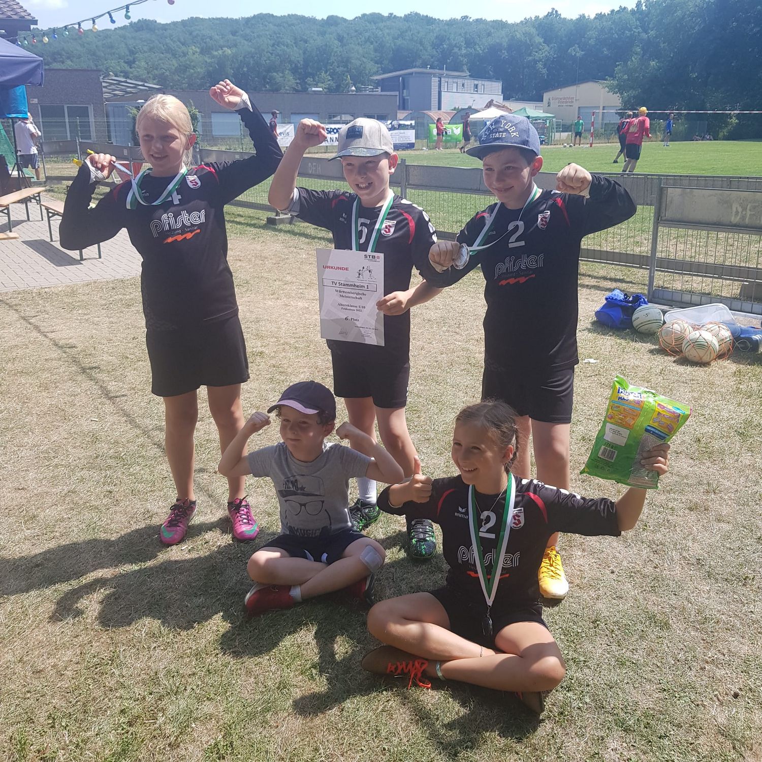 Nach anfänglichem Regen und späterer Hitze konnten sich Stammheim 2 (Anni, Lotta, Helene) den Gruppensieg sichern. Stammheim 3 (Tayo, Jonas, Luca, Magnus) konnte sich leider aufgrund eines einzigen Punktes im direkten Vergleich nicht fürs Viertelfinale qualifizieren.