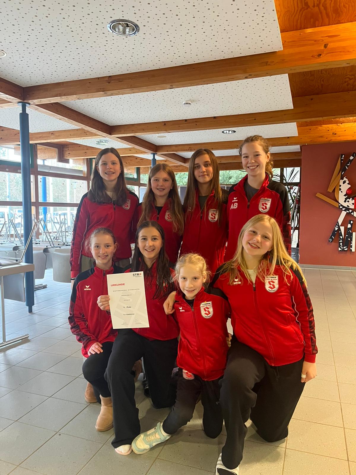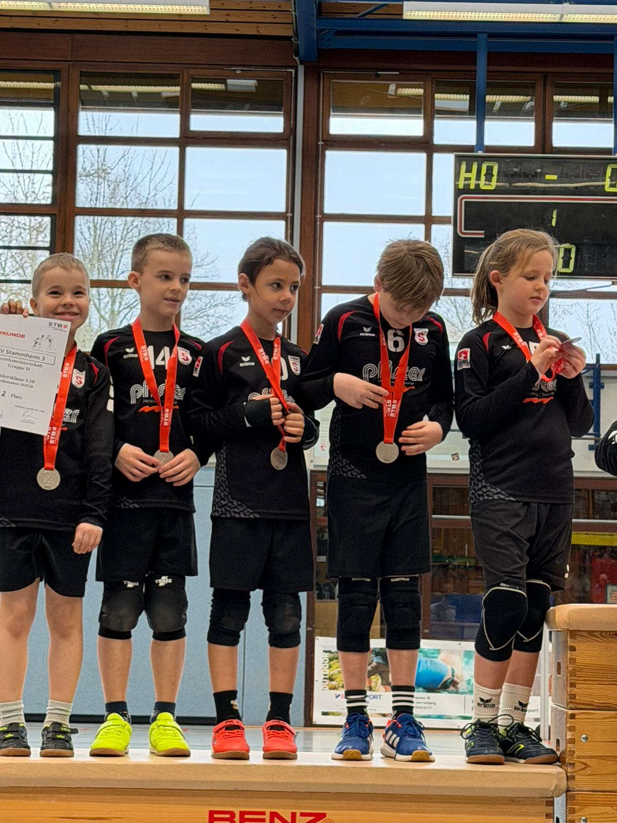 Für einen wahren Medaillenregen hat die U10 am Sonntag gesorgt. Bei der Bezirksmeisterschaft schafften der TVS 3 (Silas, Mika, Kilian, Jonas L, Stefanos) und der TVS 4 (Ida, Mia, Hannah, Amelie, Chiara, Lena) den Sprung aufs Treppchen. Mit der Silbermedaille für die Jungs und der Bronzemedaille für die Mädels wurden unsere jüngsten für ihren Trainingseifer belohnt. In beiden Teams spielen Kinder, die erst seit dieser Hallenrunde zu den U10 Trainingsgruppen gestoßen sind.