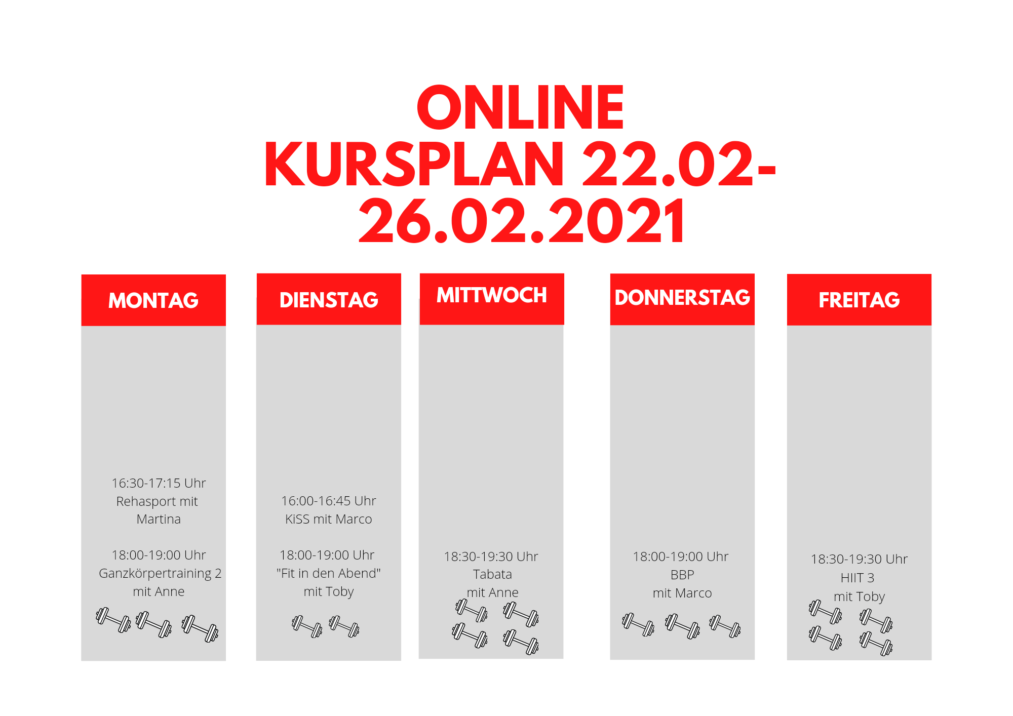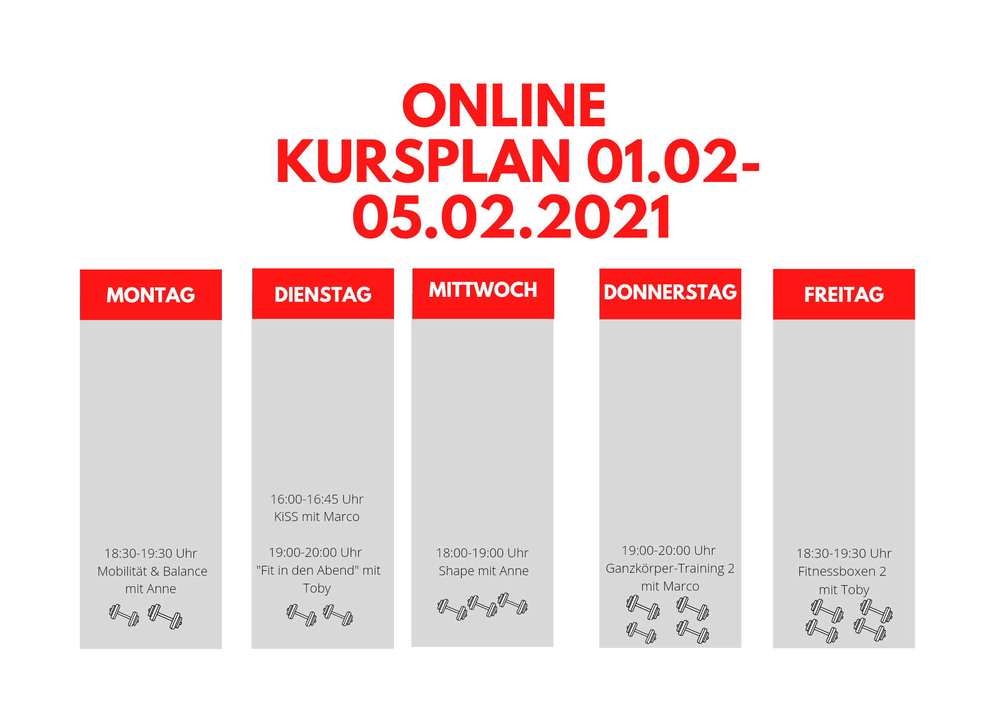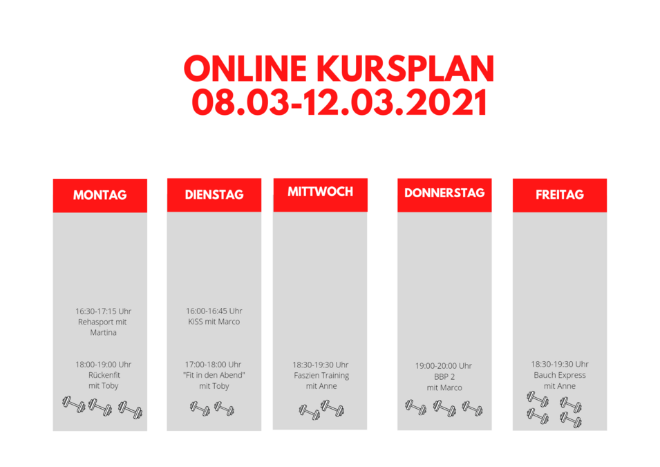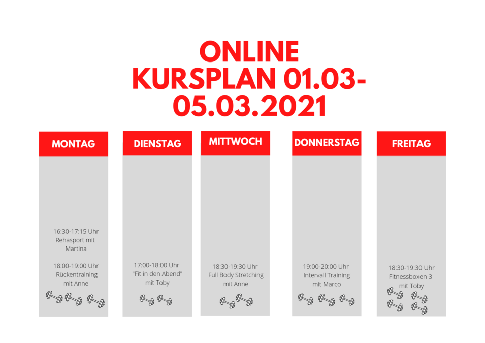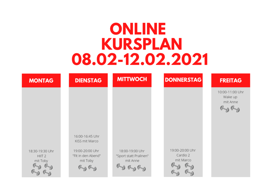 In der Grafik findet ihr den aktuellen Kursplan für diese Woche: Klickt Euch rein und trainiert den Weihnachtsspeck weg!
